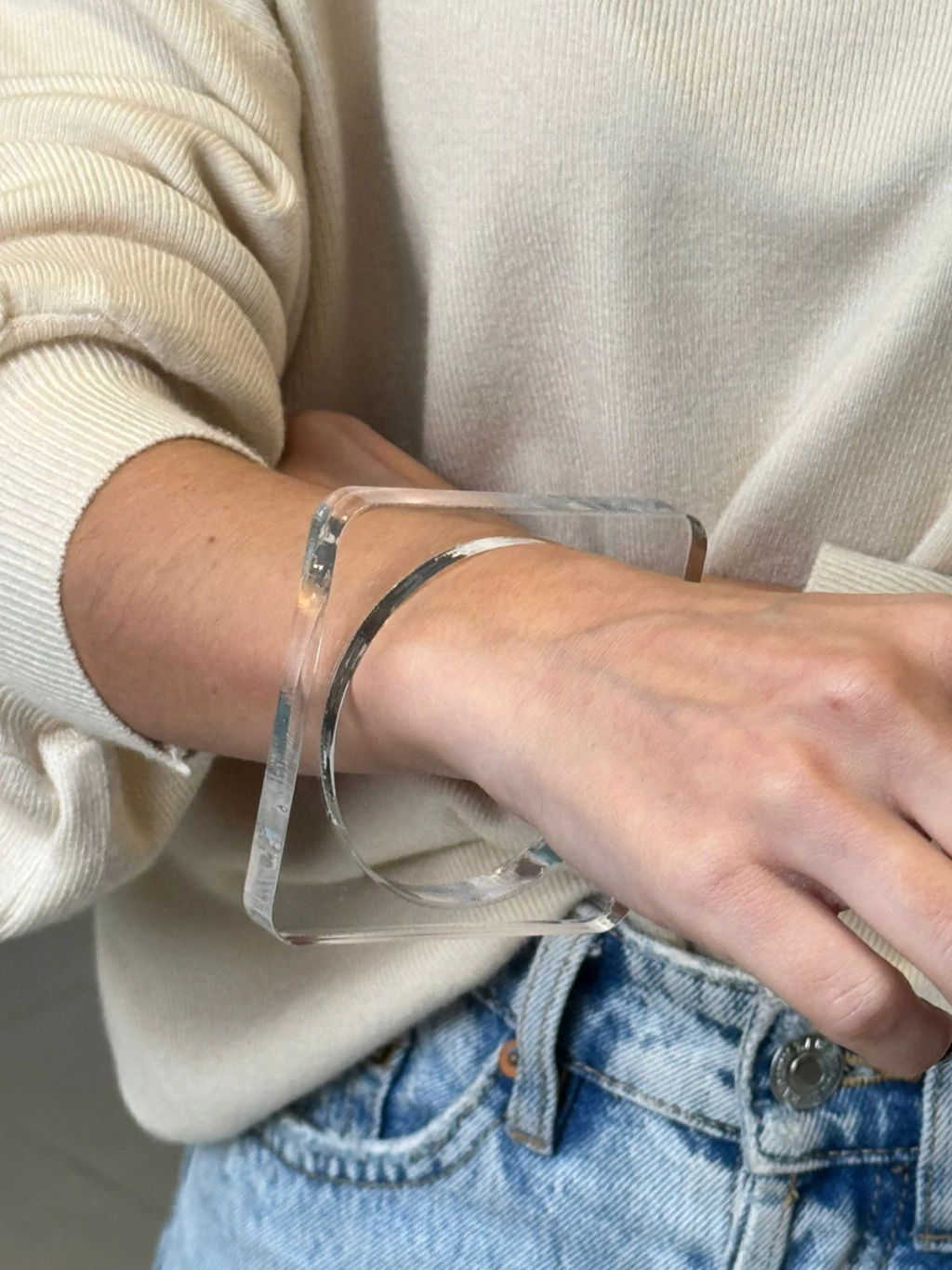 Bracelete Metal Estreito Curvado Orgânico Dourado