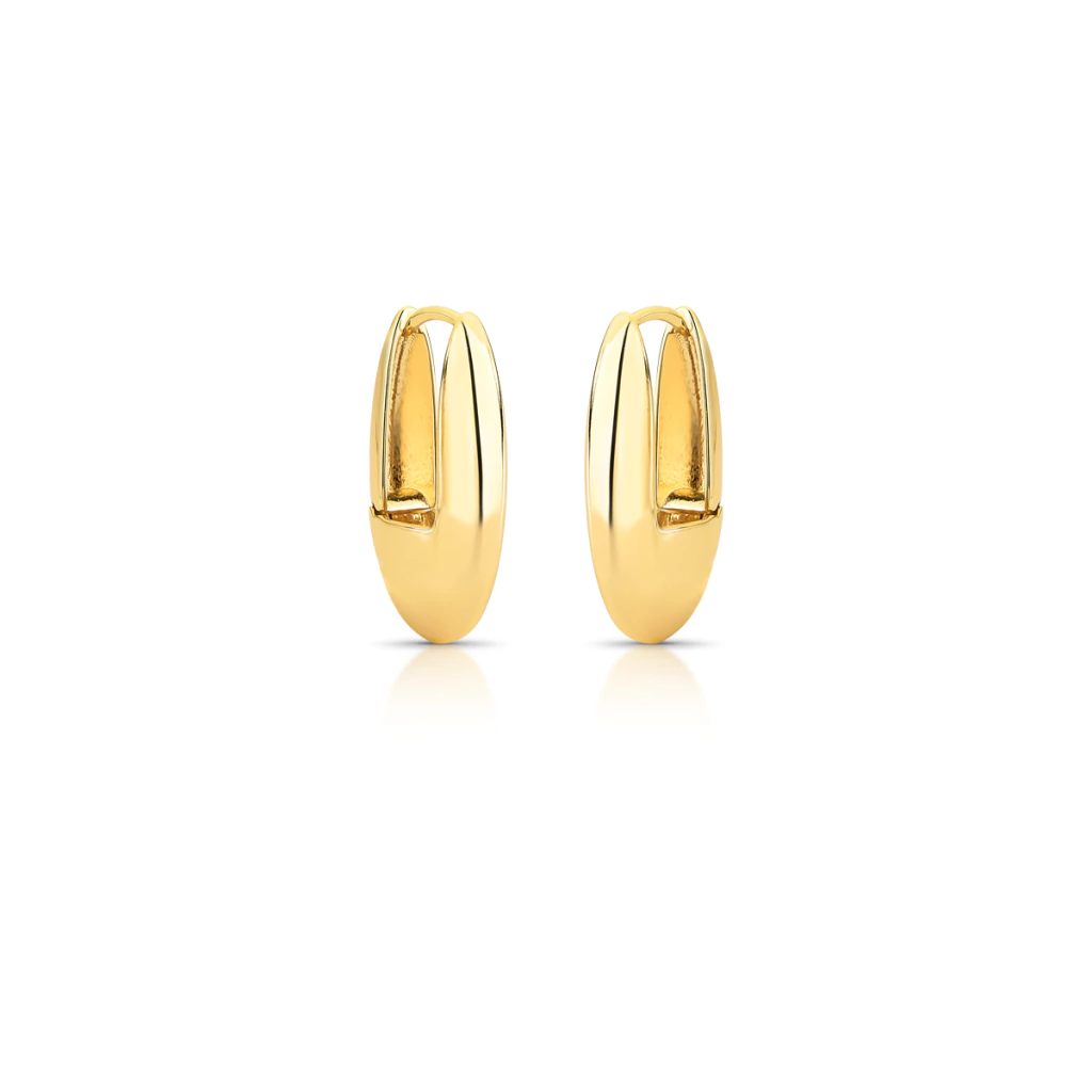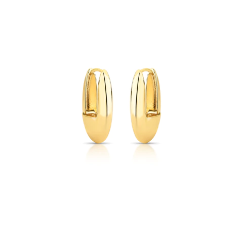 Brinco Liso Argola Oval Abaulado Banhado A Ouro