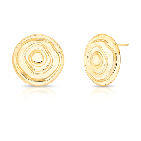 Brinco Liso Médio Redondo com Texturzado Banhado A Ouro