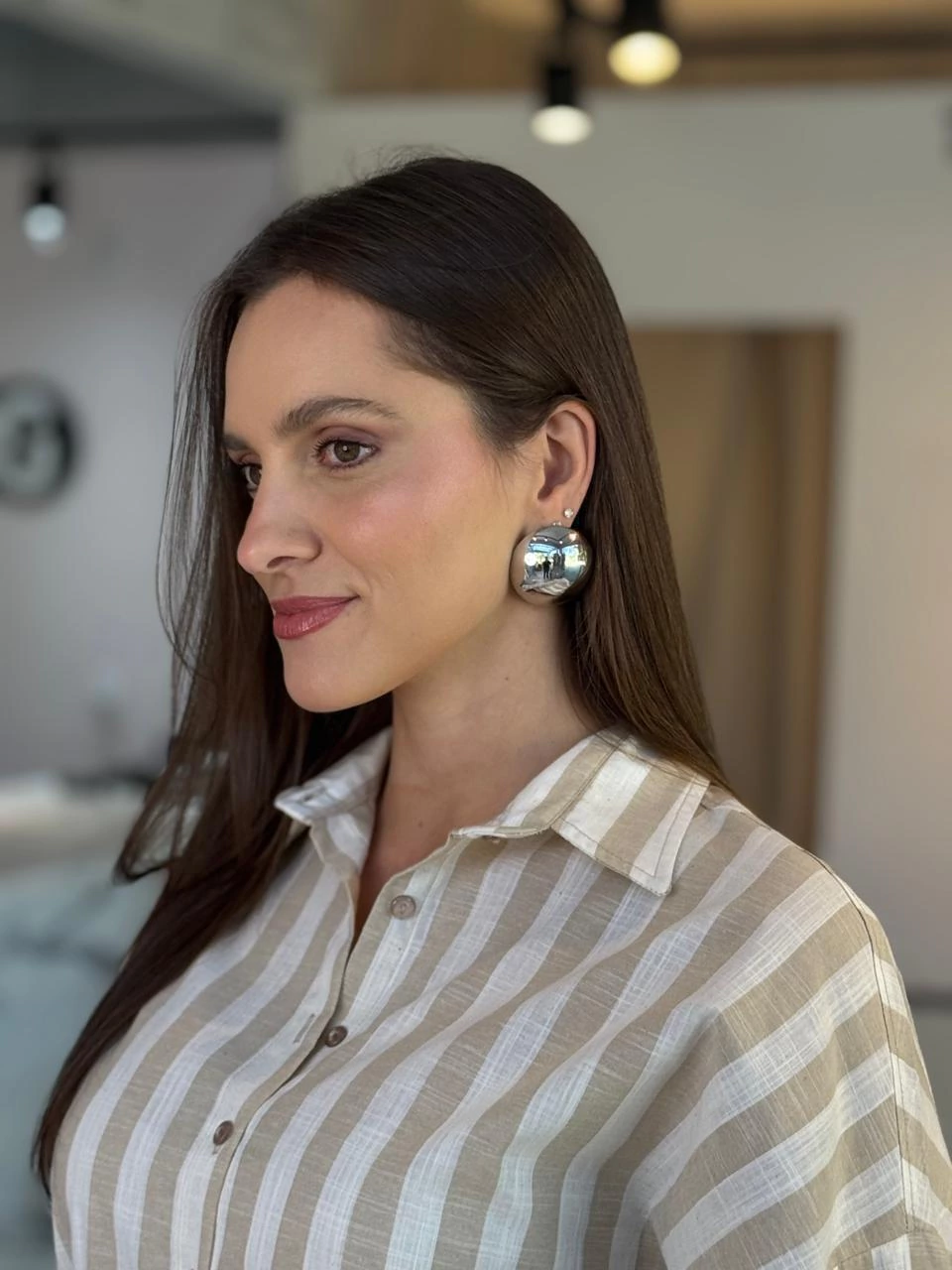 Brinco Metal Meia Esfera Prata