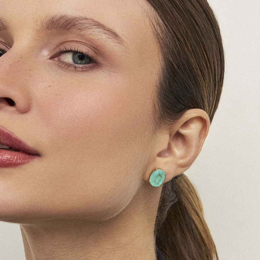 Brinco Pedra Fusion Turmalina Oval Banhado A Ouro