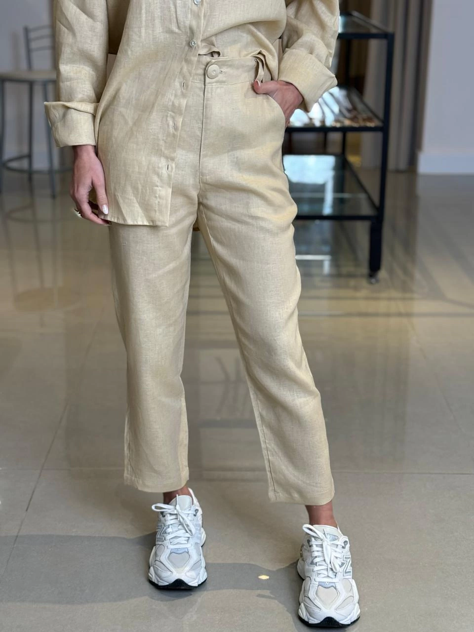 Calça Reta | Bolsos | Cós Alto | Botão Forrado