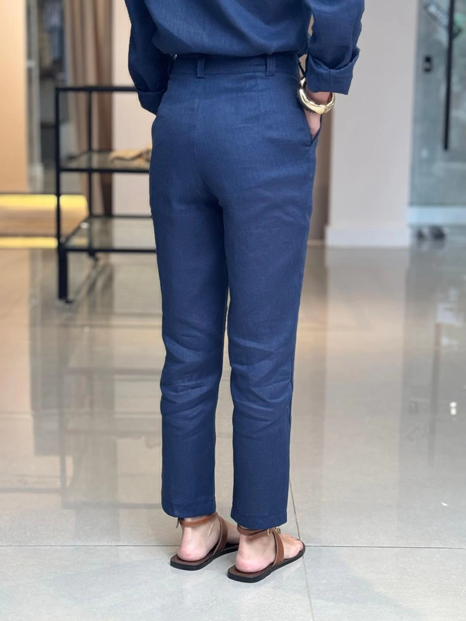 Calça Reta | Bolsos | Cós Alto | Botão Forrado