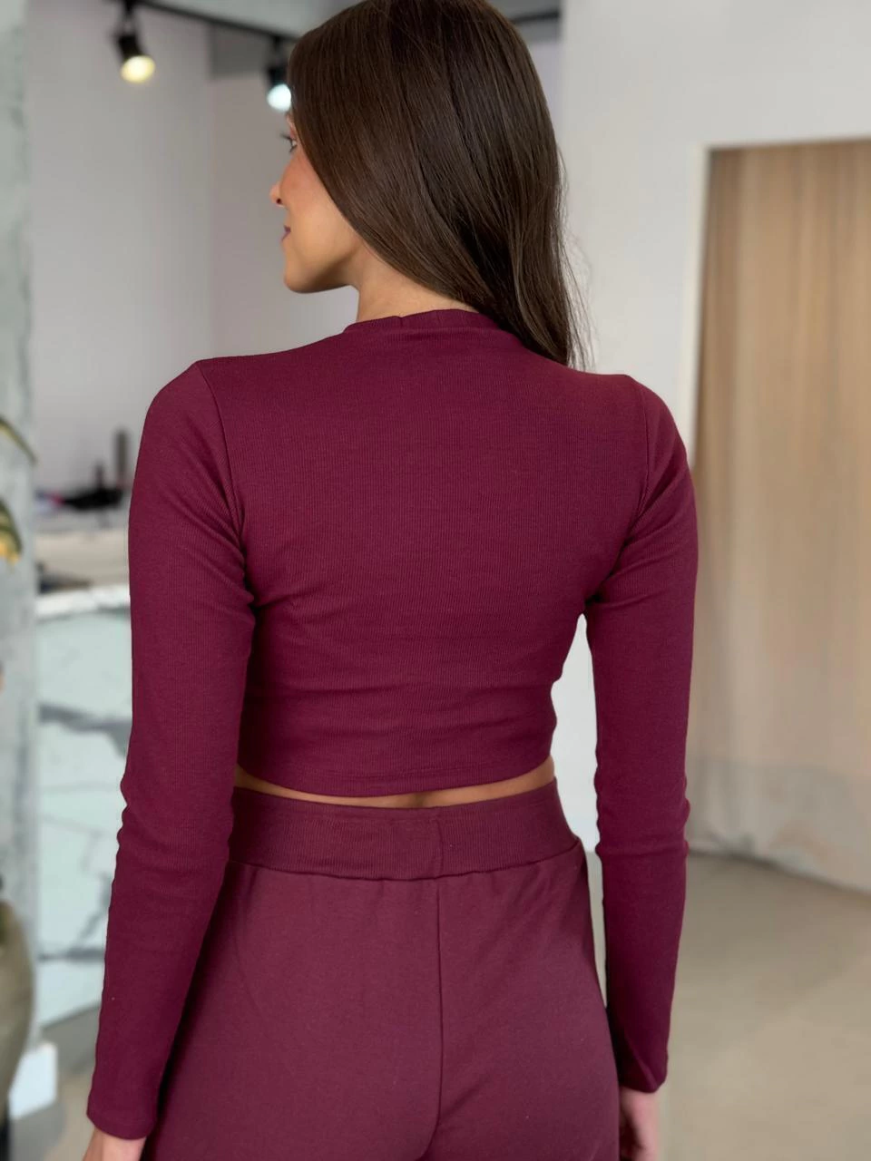 O Cropped Canelado de Manga Longa é perfeito para sobrepor com casacos e aquecer o look nesse inverno.