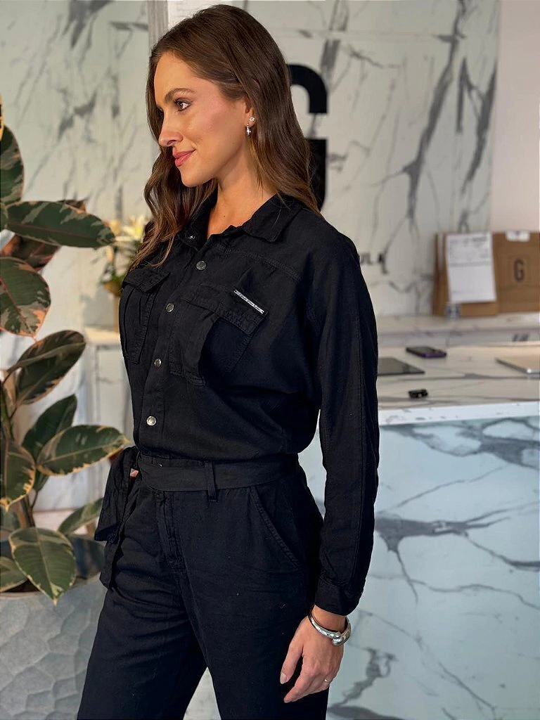Blusa Jeans estilo Jaqueta | Bolsos Frontais | Manga Longa | Botões