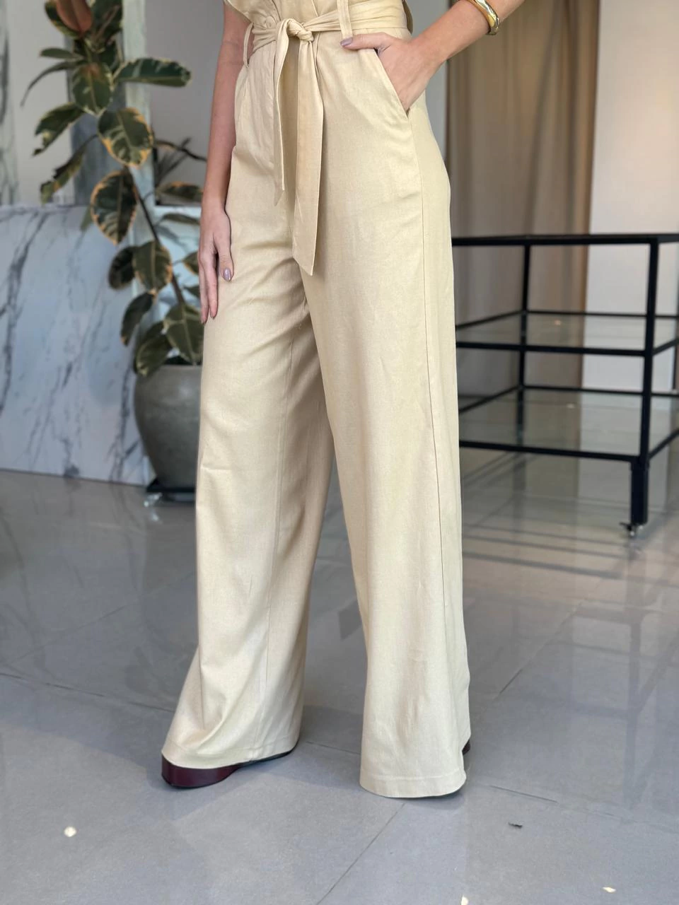 Tecido: Linho Misto com elastano