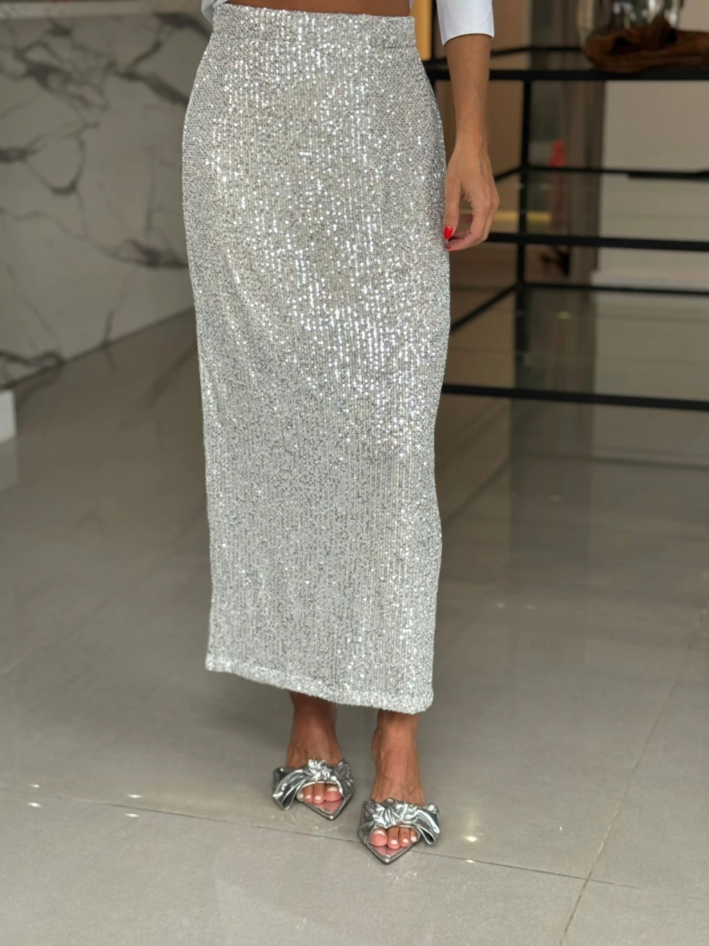Saia Midi com Fenda nas Costas | Elástico no Cós
